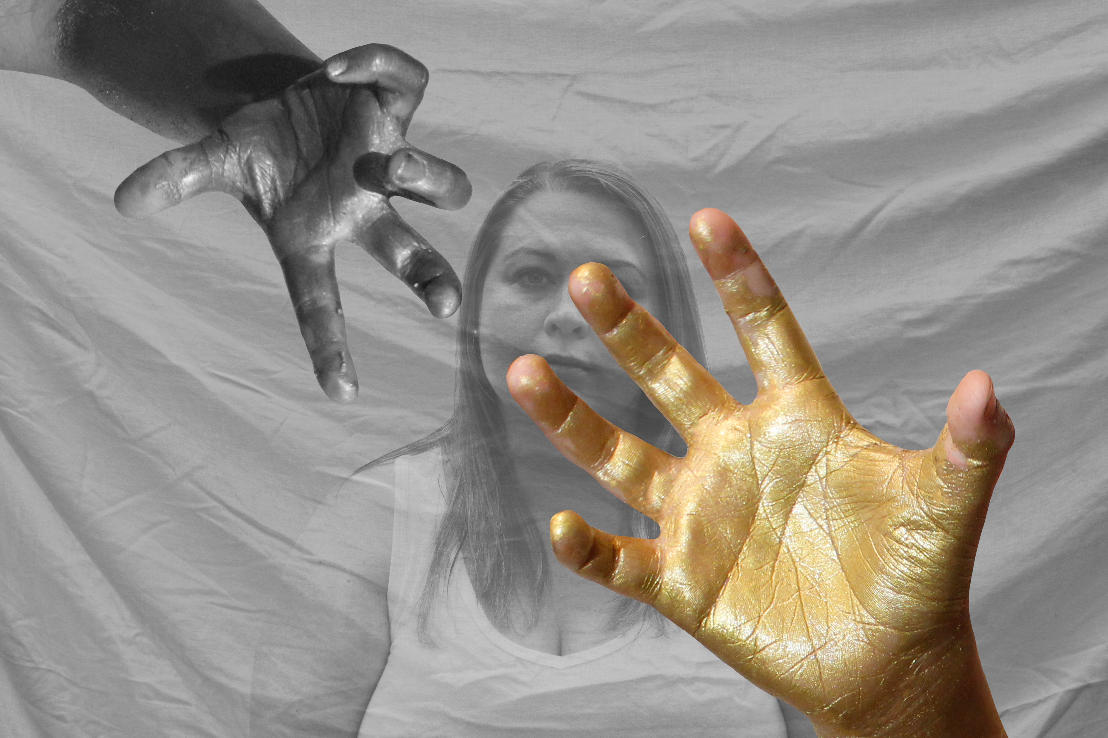 In this work, I merge both portraits with conceptual photographs to capture the full scope of the human in which I am highlighting. Having a "golden arm" is a metaphor for intravenous drug use. I pushed and elaborated upon this metaphor in my works and explored the ways I can communicate the identity and loss of each individual.